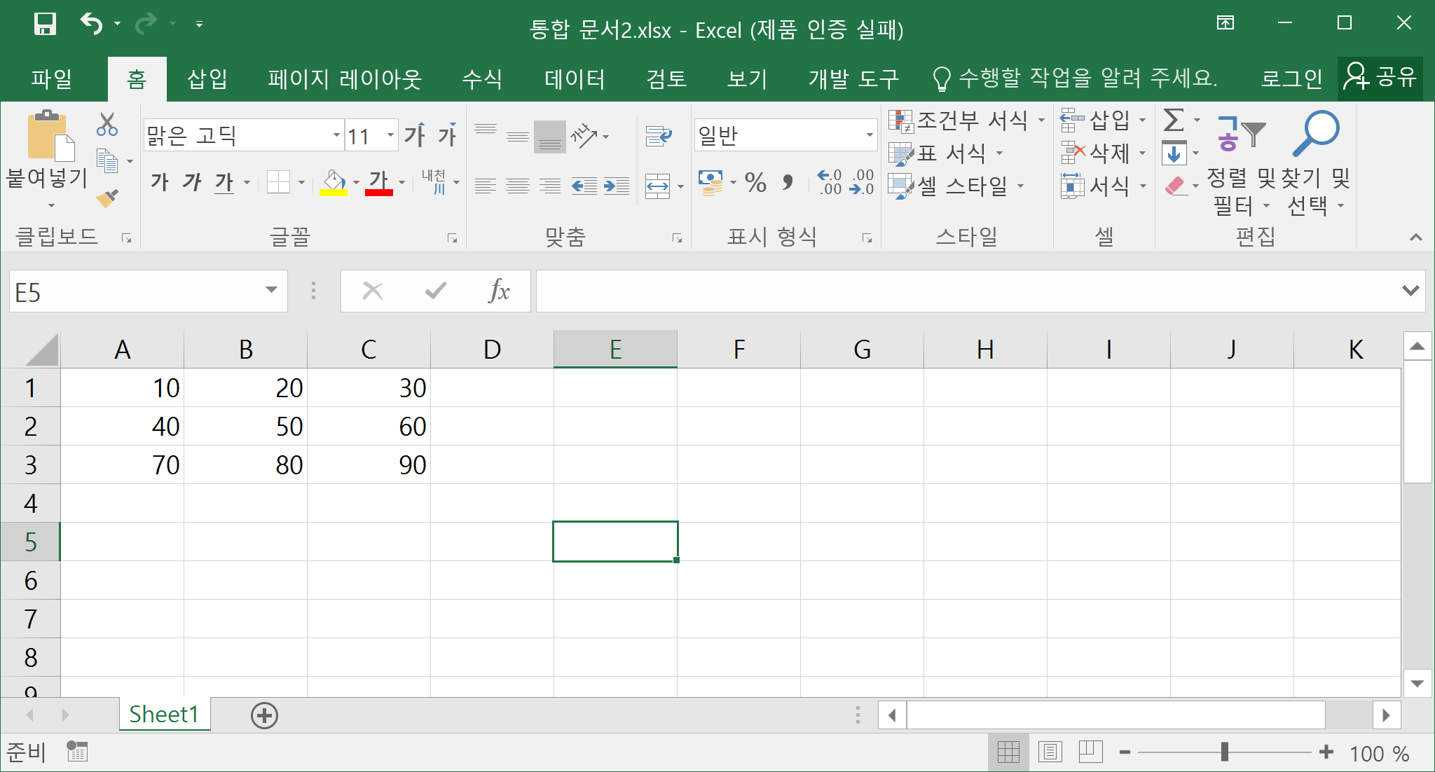 μ΄μ λ€μ ActiveWorkbookμ "ν΅ν© λ¬Έμ1.xlsx"λ‘ λμμ΅λλ€. κ·Έ νμΌμ 첫 μνΈμ A1:C3μ λ°©κΈ μ μ₯ν κ°μ λΆμ¬λ£μ΅λλ€.