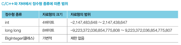 ๋ ํฐ ์ซ์๋ฅผ ํํํ ๋์๋ BigInteger ํด๋์ค๋ฅผ ๊ตฌํํ์ฌ ์ด์ฉํด์ผ ํ๋ค. ( ํํ ๋ฒ์ ์ ํ ์์ )