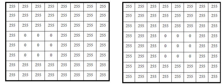 ์•„๋ž˜ ๊ทธ๋ฆผ์€ ๊ฒ€์€์ƒ‰ ์‚ฌ๊ฐํ˜•์ด ์›€์ง์ž„์„ ๋ณด์—ฌ์ค๋‹ˆ๋‹ค. ์ด ๋‘ ์˜์ƒ์˜ ํ™”์†Œ ๊ฐ’์„ ๋ณผ๊นŒ์š”?