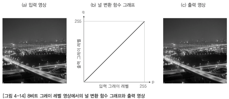 ๋ช ์ ๋ณํ(Intensity Transform)์ ๋ฐ๊ธฐ๋ฅผ ๋ณ๊ฒฝํ๋ ๊ฒ์ ๋๋ค.