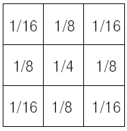 ์๋์ ๊ฐ์ด 3x3 ๊ฐ์ฐ์์ ํํฐ์ด๋ฉฐ, ๋ชจ๋ ๊ณ์๋ ์์ ๊ฐ์ผ๋ก ํฉํ๋ฉด 1์ด ๋ฉ๋๋ค.
