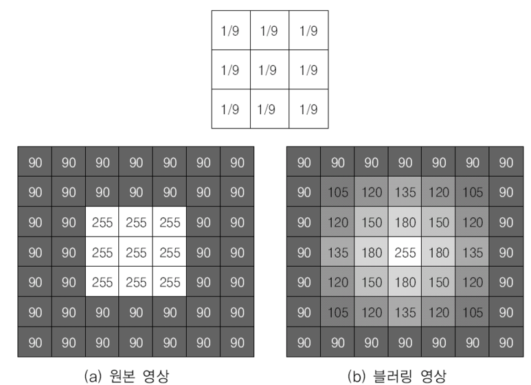 ์๋ฅผ ๋ค์ด, 3 × 3 ๋ง์คํฌ๋ ๊ณ์๊ฐ ๋ชจ๋ 1/9, 5 × 5 ๋ง์คํฌ๋ ๊ณ์๊ฐ 1/25 ์ด๋ฉฐ, ๊ณ์์ ๋ชจ๋ ํฉ์ 1์ ๋๋ค.