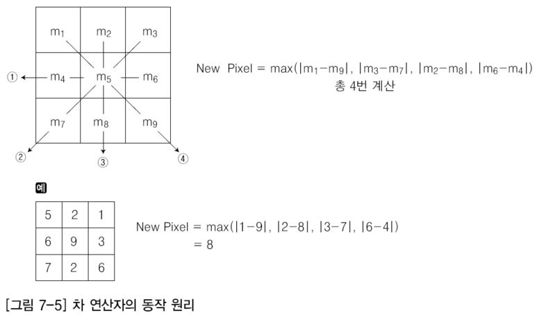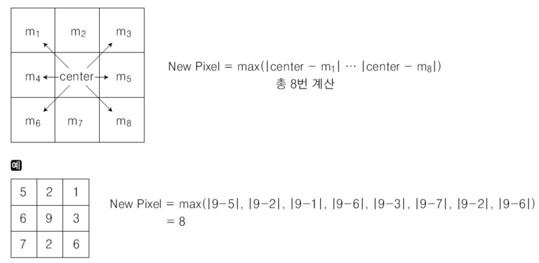 ๋์งํธ ์์์ ์ฃ์ง๋ฅผ ๊ฒ์ถํ๋ ๊ฐ์ฅ ์ฌ์ด ๋ฐฉ๋ฒ์ ํ์ ๊ฐ์ ์ฐจ์ด๋ฅผ ์ด์ฉํ๋ ๊ฒ์ ๋๋ค.