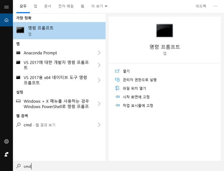 ์ ์ด๋ ๊ฒ ๊ฒ์์ฐฝ์ด ๋จ๋ฉด cmd ๋ผ๊ณ ์ ๋ ฅํ๋ฉด '๋ช ๋ น ํ๋กฌํํธ'๋ผ๋ ๊ฒ์ด ๊ฒ์๋ฉ๋๋ค.