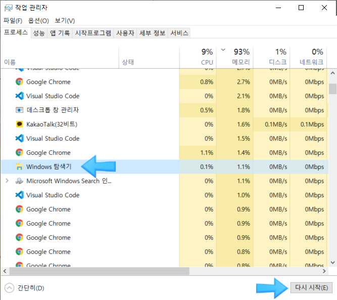 μμ κ΄λ¦¬μμ νλ‘μΈμ€ νμμ Windosw νμκΈ°λΌλ κ²μ μ°Ύμμ€μλ€.