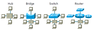 LAN ์นด๋, ํ๋ธ, ์ค์์น, ๋ผ์ฐํฐ, ์๋ฒ ์ฐ๊ฒฐ