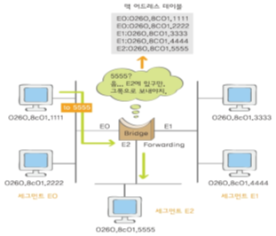 - ์ ๊ทธ๋ฆผ์ ์ธ๊ทธ๋จผํธ E0์ ์๋ MAC ์ฃผ์ 0260.8C01.1111์ ๊ฐ์ง PC๊ฐ MAC ์ฃผ์ 0260.8c01.2222๋ฅผ ๊ฐ์ง PC์ ํต์ ํ๋ ค๋ ๊ฒฝ์ฐ