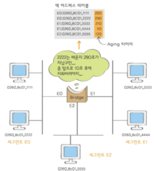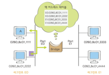 - ๋ธ๋ฆฌ์ง๋ ์ค์์น๋ ์์ ์ด ํฌํธ์ ์ฐ๊ฒฐ๋ "A"๋ผ๋ PC๊ฐ ํต์ ์ ์ํด์ ํ๋ ์์ ๋ด๋ณด๋ด๋ฉด ๊ทธ๋ ์ด PC์ ๋งฅ ์ด๋๋ ์ค๋ฅผ ์ฝ์ด์ ์์ ์ ๋งฅ ์ด๋๋ ์ค ํ ์ด๋ธ(๋ธ๋ฆฟ์ง ํ ์ด๋ธ)์ ์ ์ฅ