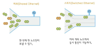 - ๋ฐ๋ผ์, 10Mbps์ ํ๋ธ์ ๋ง์ฝ 20๋์ PC๋ฅผ ์ฐ๊ฒฐํ๋ค๋ฉด ์ค์ ๋ก๋ 10Mbps๋ฅผ 20์ผ๋ก ๋๋ ๋งํผ์ ์๋๋ฅผ ๊ฐ์ ์ฌ์ฉ
