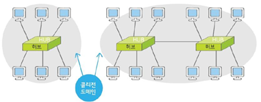 ํ๋ธ์ ์ฐ๊ฒฐ๋ ๋ชจ๋ PC๋ ํ๋์ Collision ๋๋ฉ์ธ์ ์ํจ
