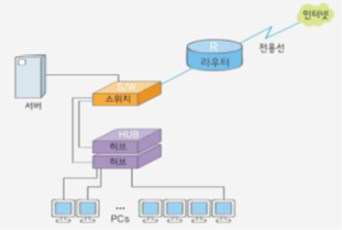 LAN ์นด๋, ํ๋ธ, ์ค์์น, ๋ผ์ฐํฐ, ์๋ฒ ์ฐ๊ฒฐ