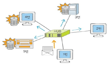 - ๊ทธ๋ฌ๋ฏ๋ก 100Mbps ํ๋ธ๋ก๋ ๋์ฉ๋ ๋ฐ์ดํฐ ์ฒ๋ฆฌ๋ฅผ ํ๋์ ์ปดํจํฐ๋ง ๋ฐ์ดํฐ ์ก์์ ์ด ๊ฐ๋ฅ
