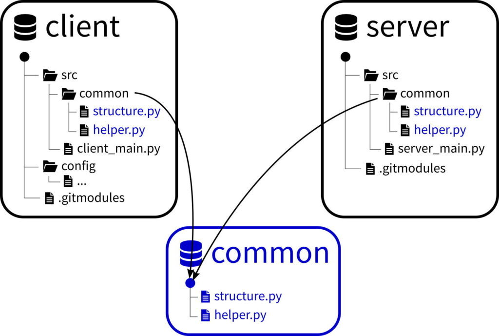 ์ ์ฅ์ ์์ ๋ค๋ฅธ Git ์ ์ฅ์๋ฅผ ๋๋ ํ ๋ฆฌ๋ก ๋ถ๋ฆฌํด ๋ฃ๋ ๋ฐฉ์์ผ๋ก ์ฌ์ฉ๋๋๋ฐ, public์ธ ํ ํ๋ก์ ํธ์ repository ํ์์ ๊ณตํต์ผ๋ก ์ฌ์ฉํ๋ private ํ๋ก์ ํธ์ repository๋ฅผ ์์์ผ๋ก ๋๊ณ ๊ด๋ฆฌํ ์ ์์ด ๊ต์ฅํ ํธ๋ฆฌํ๊ฒ ๊ฐ๋ฐ์ด ๊ฐ๋ฅํฉ๋๋ค. ์ ๊ทธ๋ฆผ์ฒ๋ผ ๋ค์์ ํ๋ก์ ํธ๊ฐ ๊ฐ์ submodule๋ก ๋ฑ๋กํ ๋ ํฌ์งํ ๋ฆฌ๋ฅผ ์ ๊ทผํ ์ ์์ด ํด๋ผ์ด์ธํธ, ์๋ฒ ๊ฐ๋ฐ์๊ฐ ๋์์ ์ฌ์ฉํ ํ์ผ์ ๋ณ๋๋ก ๊ด๋ฆฌํ ์ ์์ต๋๋ค.