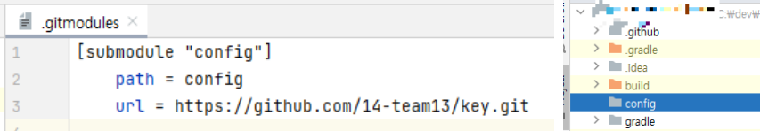 ํ์ง๋ง application.yml์ด ๋ณ๊ฒฝ์ด ๋์๋์ง๋ ์ง์ ํ์ธํ๋ ๋ถํธํจ์ด ์์์ต๋๋ค. ๊ทธ๋์ ์๊ฒ๋ ๊ฒ์ด ๋ฐ๋ก Git Submodule์ ๋๋ค!