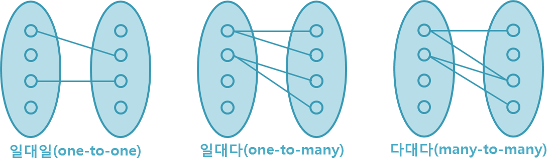 ν μ΄λΈ κ°μ κ΄κ³λ κ΄κ³λ₯Ό λ§Ίλ ν μ΄λΈμ μμ λ°λΌ λ€μκ³Ό κ°μ΄ λλ μ μμ΅λλ€.