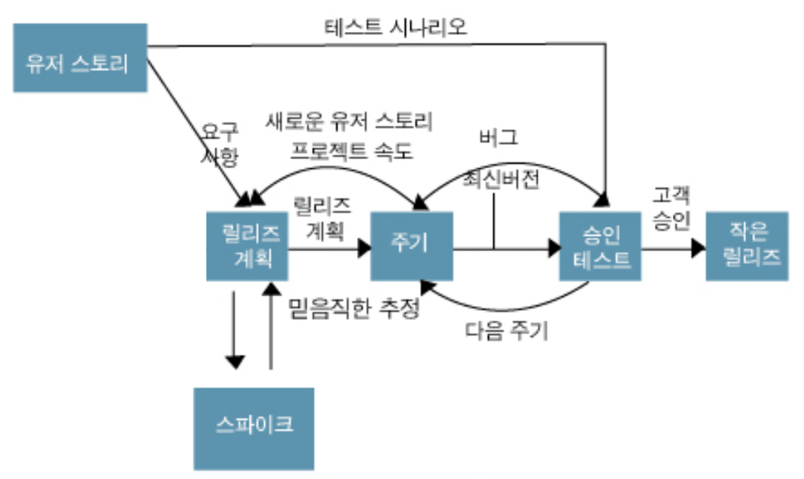 - ๊ณ ๊ฐ์ ์๊ตฌ์ฌํญ ๋ณํ์ ์ ์ฐํ๊ฒ ๋์ํ ์ ์๋๋ก ์ผ์ ํ ์ฃผ๊ธฐ๋ฅผ ๋ฐ๋ณตํ๋ฉด์ ๊ฐ๋ฐ๊ณผ์ ์งํ