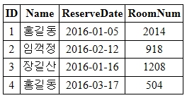 λ€μ μμ λ Reservation ν μ΄λΈμ λͺ¨λ λ μ½λλ₯Ό λ¨Όμ ReserveDate νλμ λ΄λ¦Όμ°¨μμΌλ‘ μ λ ¬ν λ€μ, λλ€μ RoomNum νλμ λ΄λ¦Όμ°¨μμΌλ‘ μ λ ¬νμ¬ μ ννλ μμ μ λλ€.