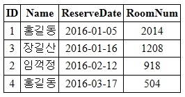 λ€μ μμ λ Reservation ν μ΄λΈμμ Name νλμ RoomNum νλλ§μ μ ννλ μμ μ λλ€.