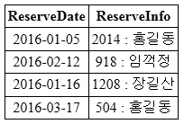 SELECT ReserveDate, CONCAT(RoomNum, " : ", Name) AS ReserveInfo