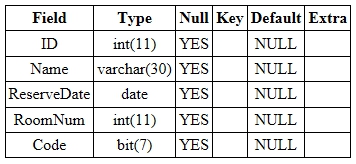 λ€μ μμ λ ALTER TABLE λ¬Έμ μ¬μ©νμ¬ Reservation ν μ΄λΈμ BIT(7) νμ μ μ μ₯ν μ μλ Code νλλ₯Ό μΆκ°ν©λλ€.