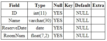 μ΄λ κ² RoomNum νλμ νμ μ λ³κ²½ν νμ DESCRIBE λ¬Έμ μ¬μ©νμ¬ Reservation ν μ΄λΈμ μμΈ μ 보λ₯Ό νμΈνλ©΄, λ€μμ€ν κ²°κ³Όμ κ°μ΄ λνλ©λλ€.