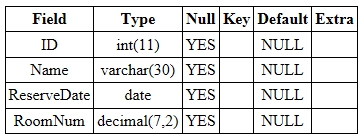 μ΄λ κ² RoomNum νλμ νμ μ λ³κ²½ν νμ DESCRIBE λ¬Έμ μ¬μ©νμ¬ Reservation ν μ΄λΈμ μμΈ μ 보λ₯Ό νμΈνλ©΄, λ€μμ€ν κ²°κ³Όμ κ°μ΄ λνλ©λλ€.