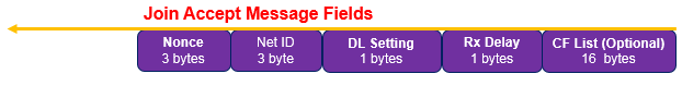 Aκ° ν¬ν¨λμ΄ λ©μμ§λ₯Ό λ°μ κ°μ AppNonce, NetIDλ₯Ό, DevAddr, DLSettings, RxDelay, λ° CFList.DevAddrμ νμ¬ λ€νΈμν¬ λ΄μ μλ λλ°μ΄μ€μ 32 λΉνΈ μλ³μμ΄λ€. DevAddrμ DevAddr 7 MSBλ NwkIDλΌκ³ NwkID νλ©° NetIDμλ NetID ν¬ν¨λμ΄μμ΅λλ€. λ€λ₯Έ λΉνΈλ λ€νΈμν¬ μλ²μμ μμλ‘ μ νν μ μμ΅λλ€. DLSettingsμλ DLSettings λ€μ΄ λ§ν¬ ꡬμ±κ³Ό κ΄λ ¨λ λͺ κ°μ§ κ°μ΄ μμ΅λλ€. RxDelayλ RxDelay μ‘μμ νλ‘μΈμ€ μ¬μ΄μ μ§μ°μ λλ€. CFListμ±λ CFList μ£Όνμμ κ΄ν μ νμ νλμ λλ€. λ§μ§λ§μΌλ‘ μ 체 κ°μ μλ½ λ©μμ§λ AppKeyλ‘ AppKey μνΈνλ©λλ€.