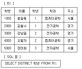 DISTINCT : ์ค๋ณต ํํ์ด ์์ผ๋ฉด ํ๋๋ง ์กฐํ