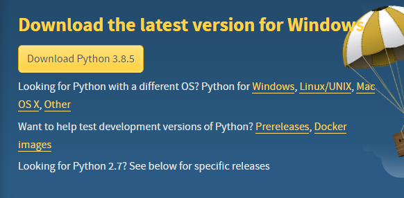 ํ์ด์ฌ ์ค์น www.python.org/www.python.org/downloads/ ์ ํ์ด์ฌ ๊ณต์ ์ฌ์ดํธ๋ก ๋ค์ด๊ฐ ์๋ ์ฌ์ง๊ณผ ๊ฐ์ด 'Download Python 3.8.5'๋ฅผ ํด๋ฆญํ์ฌ ์ค์นํฉ๋๋ค. ์ค์น ์งํ์ ์ํค๋๋๋ก ๊ธฐ๋ณธ๊ฐ์ผ๋ก Next๋๋ฅด๊ณ ์ค์นํฉ๋๋ค. ์๋ํฐ ์ค์น ํ์ด์ฌ์ ์ฌ์ฉํ ์๋ํฐ๋ ๋ํ์ ์ผ๋ก ํ์ด์ฐธ(PyCharm), VScode๊ฐ ์์ต๋๋ค. VSCode๊ฐ ์ข ๋ ์ข์ ๊ฒ ๊ฐ์ ์ด๊ฑฐ๋ฅผ ์ค์นํฉ๋๋ค. code.visualstudio.com/ Visual Studio Code - Code Editing. Redefined Visual Studio Code is a code editor redefined and optimized for building and debugging modern web..